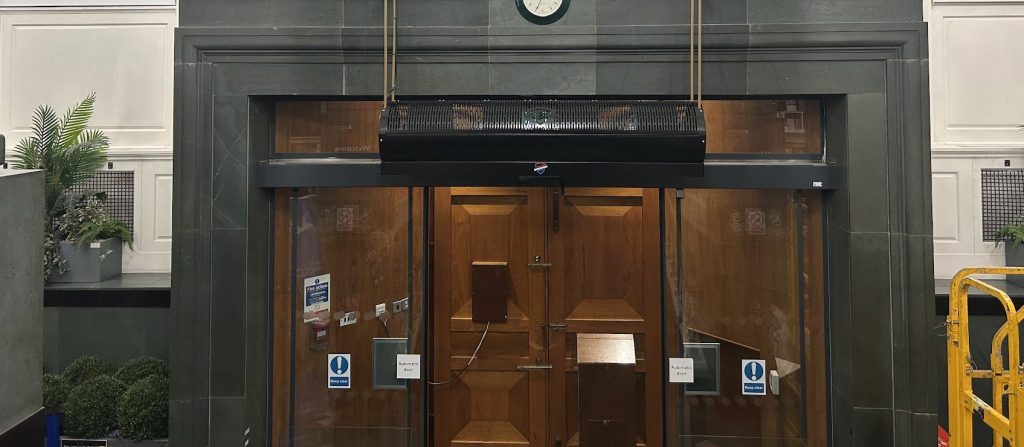 Following the proposal, we then removed the existing overdoor heater and prepared to install the Confortshield Air Barrier. To maintain a seamless appearance, we utilised brackets created by Confab Engineering to adjoin the door to the existing exterior. Finally, we reduced the speed of the air barrier and modified the controls, thereby softening the noise and tidying the installation.