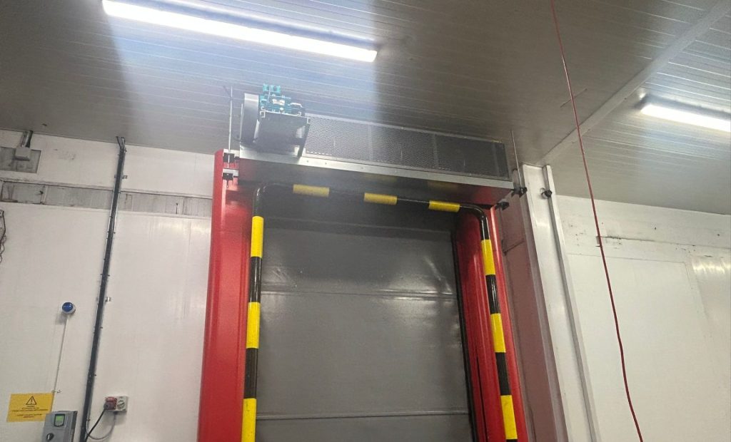 Following a comprehensive site assessment, two Enershield Durashield Air Barriers (DSH-96) were installed externally above the freezer room doorways to operate in conjunction with the existing fast-action doors. The Air Barriers were designed to activate only during door operation and were fully integrated with the automatic door controls, ensuring energy-efficient use without unnecessary runtime.